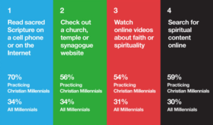 Barna conducted a study on Millennials and faith. They found four ways they integrate technology with their faith.