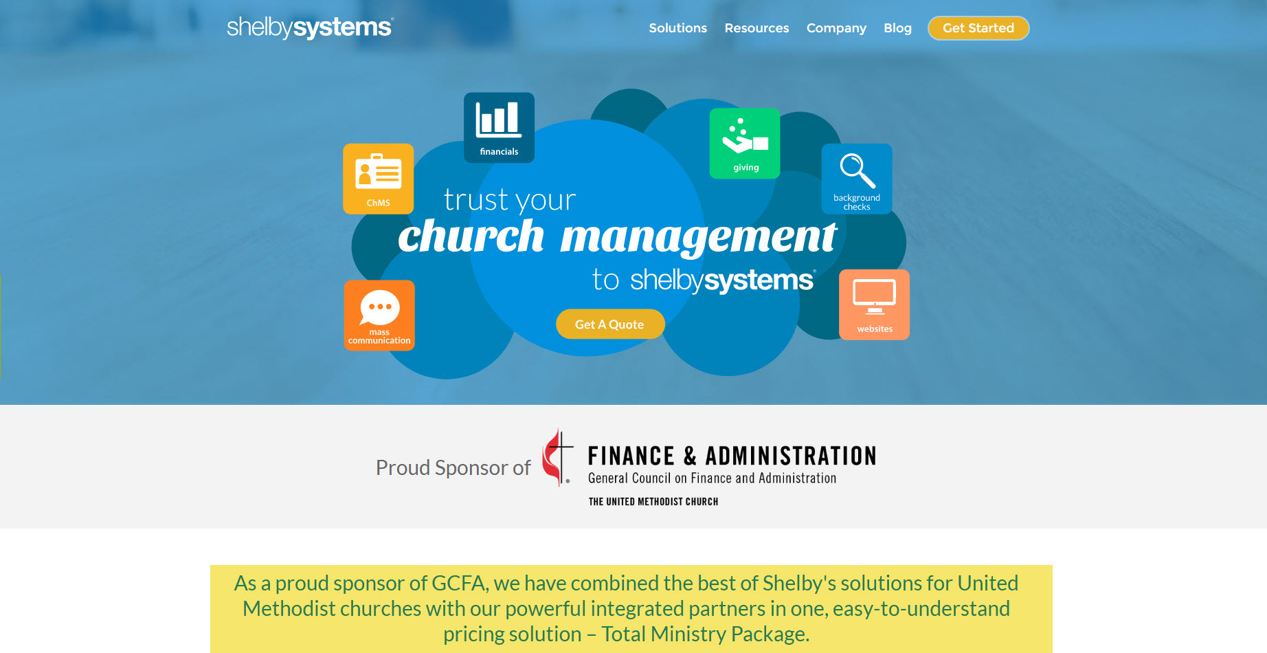 NASHVILLE, TN — The General Council on Finance and Administration (GCFA) announces a new corporate sponsor. Shelby Systems is a leading provider of full-service church management software (ChMS) to churches of all sizes, denominational headquarters, and other organizations in the faith-based communities around the world. Shelby offers a wide range of integrated technology solutions with a goal to support ministries of The United Methodist Church.