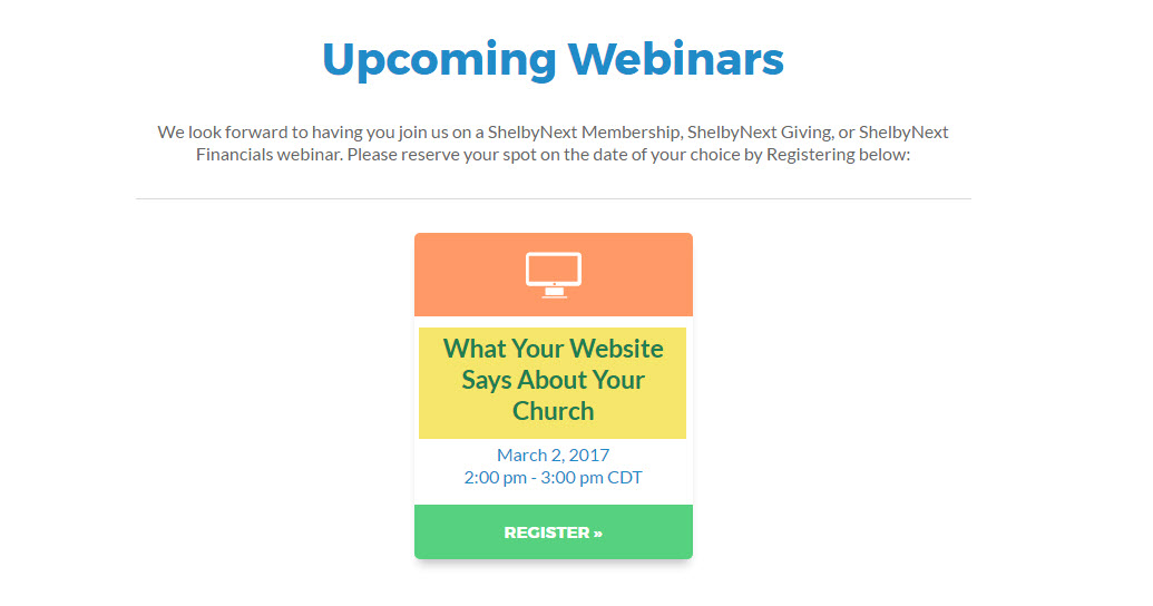 Your ministry’s website is your digital front door. It should be physically appealing, leveraging and engaging. These days there are thousands of ways to set up a website. We are going to go back to the basics in this webinar and talk about the 3 things your website should accomplish and how you can use some of Shelby’s Website and ChMS tools to help you do that.
